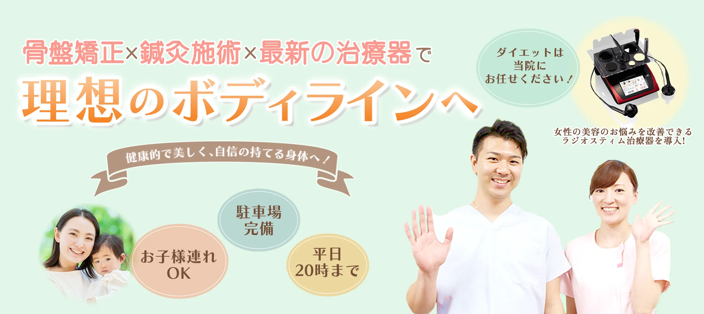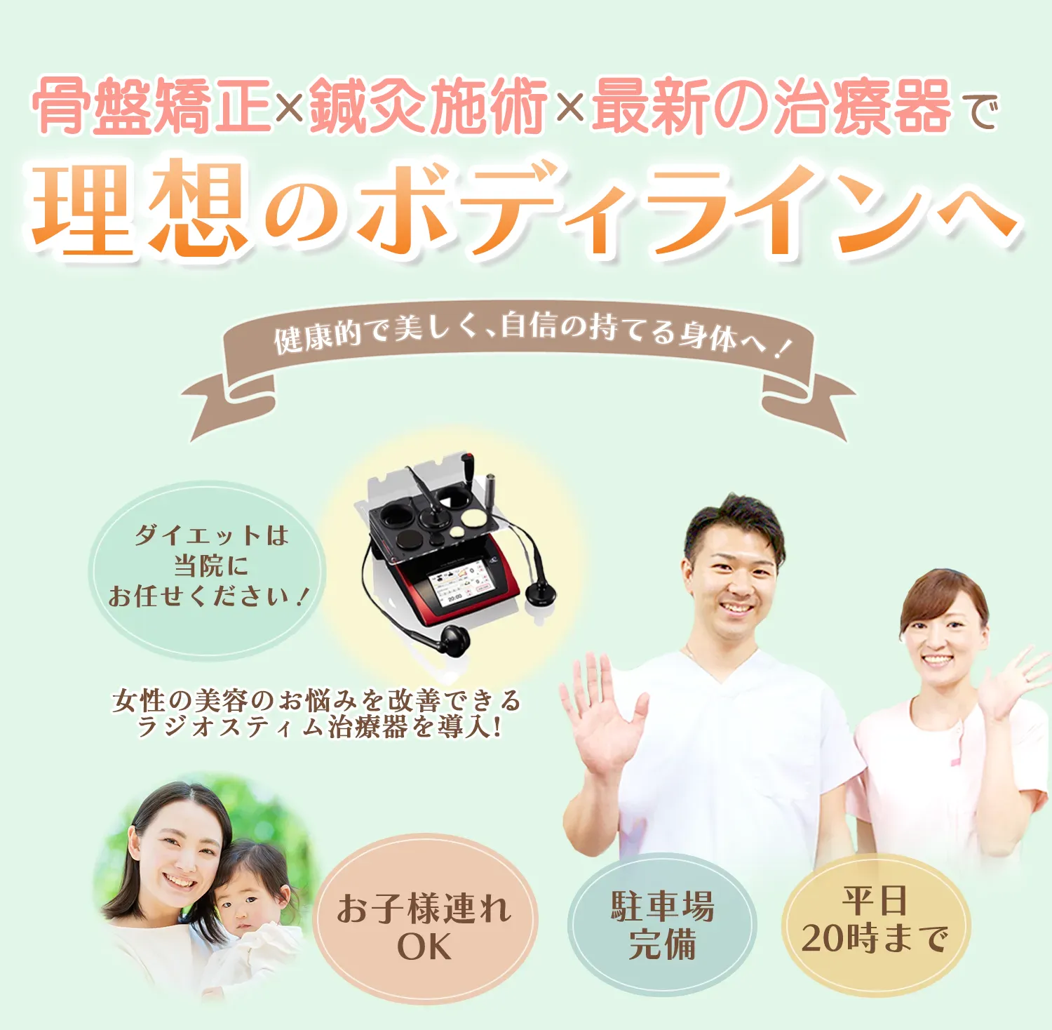 整骨院のノウハウを活かし、遺伝子検査・EMS・ラジオスティム治療器・食事管理を軸とした、健康に痩せていただくプログラムを提供しております。